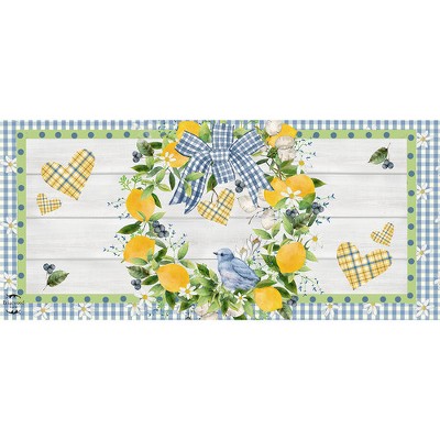 Briarwood Lane Spring Bluebird Lemon Wreath Mini Mat 22x10 Indoor Outdoor For Spring Doormat