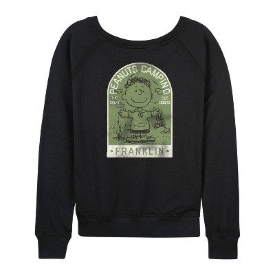 Women's - Peanuts - Franklin Camp Counselor Lightweight French Terry Wide Neck Long Sleeve Graphic Shirt