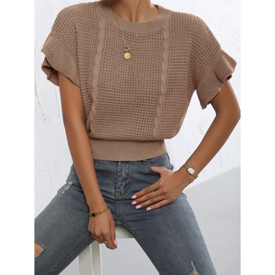 Women's Short Sleeve Cable Polo Pullover Sweater - Wild Fable™