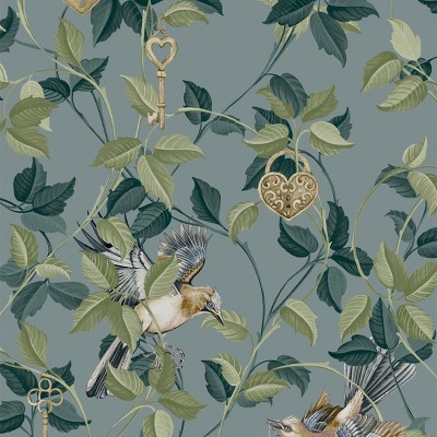 Jardin Teal Floral Birds Paste the Wall Wallpaper