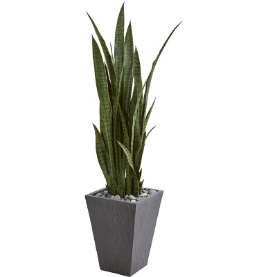 Nearly Natural 57-in Artificial Sansevieria Snake Plant in Slate Planter