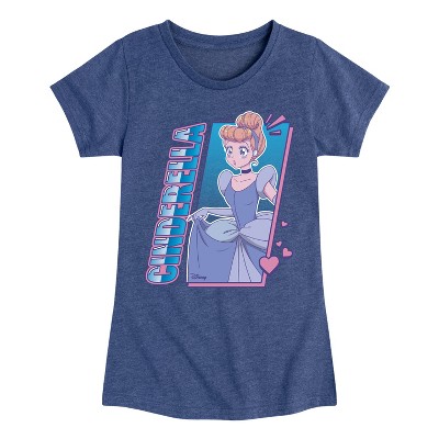 Girls' - Disney Princess - Cinderella Kawaii Anime with Hearts Fitted Short Sleeve Graphic T-Shirt