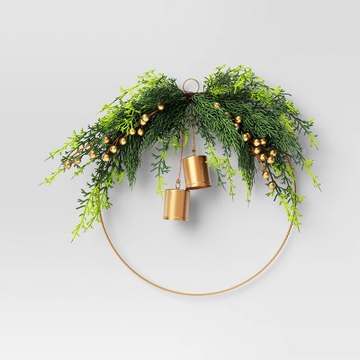 Christmas Hoop Wreath with Gold Bells - Wondershop™