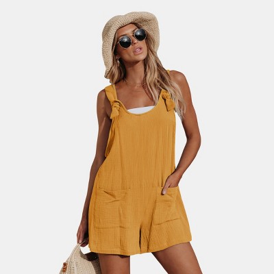 Women's Patch Pocket Knotted Straps Pinafore Romper - Cupshe