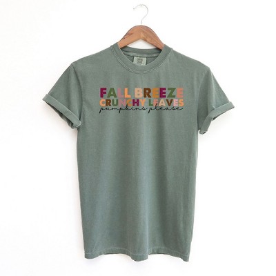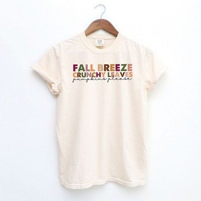 Simply Sage Market Women's Fall Breeze Crunch Leaves Colorful Short Sleeve Garment Dyed Tee