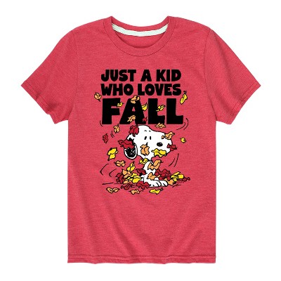 Boys' - Peanuts - Just A Kid Who Loves Fall Short Sleeve Graphic T-Shirt