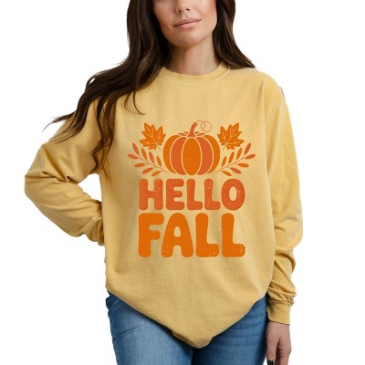 Simply Sage Market Hello Fall Pumpkin Distressed Garment Dyed Long Sleeve