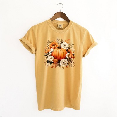 Simply Sage Market Women's Pumpkin Floral Arrangement Short Sleeve Garment Dyed Tee