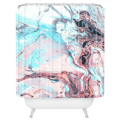 Splatter Marble Shower Curtain Blue - Deny Designs: Polyester Poplin, Easy Care, Buttonhole Top