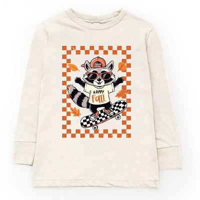 Happy Fall Racoon Skater - Toddler Long Sleeve Graphic Tee and Youth Long Sleeve Graphic T-Shirt