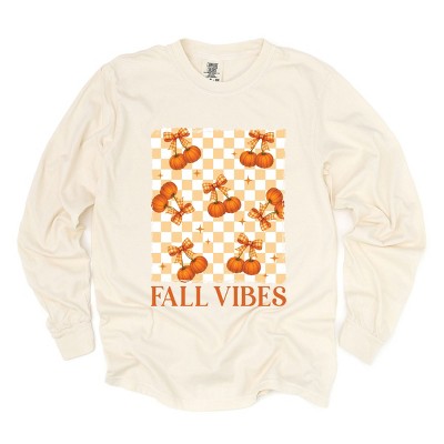 Simply Sage Market Fall Vibes Checked Pumpkins Garment Dyed Long Sleeve