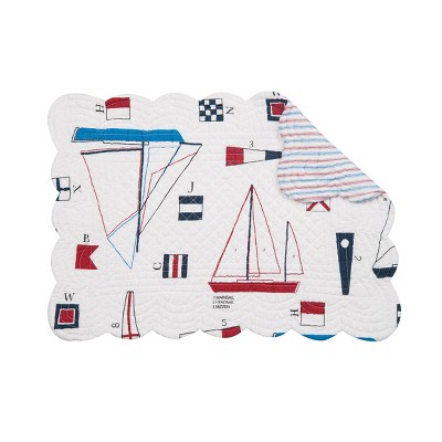 C&F Home Windward Port Sail Boat Nautical Cotton Quilted Reversible Patriotic Placemats Set of 6, 13" x 19"