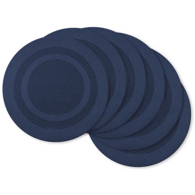 DII Doubleframe Indoor/Outdoor PVC Round Placemat/6, Nautical Blue, 13.75" Diameter