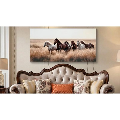 Rustic Horses on Grassland Canvas Wall Art, Western Farm Equine, Ready to Hang, 40x20 Inches