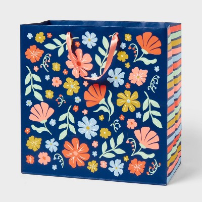 Large Square Floral Wedding Gift Bag with Tag Blue/White - Spritz™