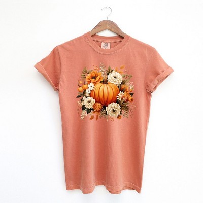 Simply Sage Market Women's Pumpkin Floral Arrangement Short Sleeve Garment Dyed Tee