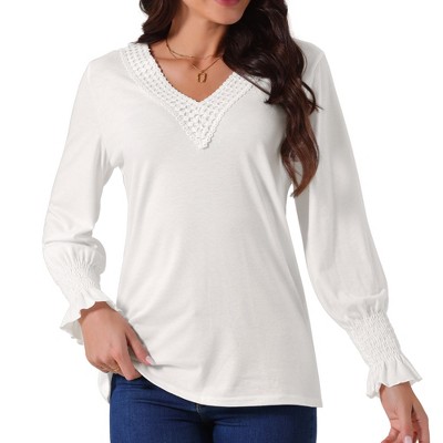 Seta T Women's V Neck Long Sleeve Smocked Cuff Casual Fall Winter Fashion T-Shirt