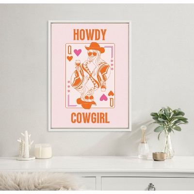 Kate & Laurel All Things Decor 18"x24" Sylvie Howdy Cowgirl Pink Orange Framed Canvas by Honey Island Studio