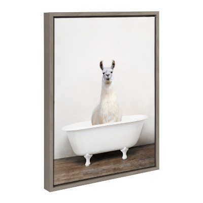 Kate & Laurel All Things Decor 18"x24" Sylvie Maximalist Llama Bathroom Mirror Framed Canvas by Honey Island Studio White