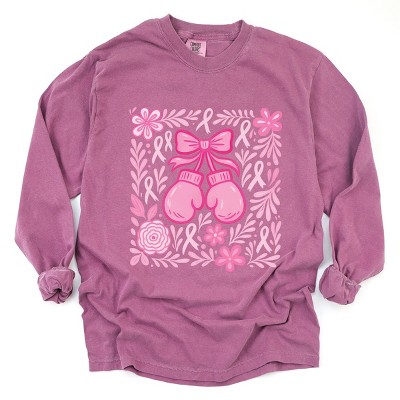 Breast Cancer Boxing Gloves - Women's Garment Dyed Long Sleeve Graphic T-Shirt