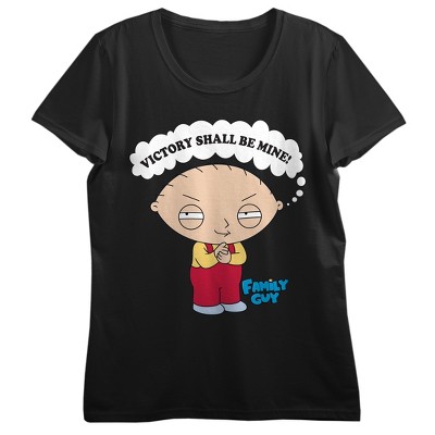 Family Guy Stewie Victory Shall Be Mine Crew Neck Short Sleeve Women's Black Crop Top