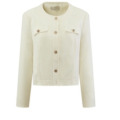 INSPIRE CHIC Women's Summer Cropped Puff Short Sleeve Round Neck Front Button Down Vintage Tweed Jacket
