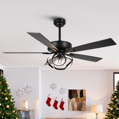 Bella Depot 18" Black Rattan Ceiling Fan with Light Kit and Remote 3-speed Reversible Caged Fan