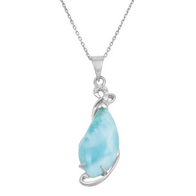Caribbean Treasures Sterling Silver, Fancy Larimar 18" Pendant Necklace - Blue