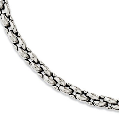 Black Bow Jewelry Men's 8mm Stainless Steel Fancy Oval Cable Chain Necklace, 24 Inch