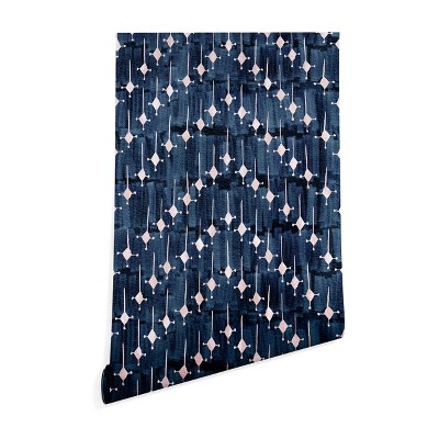 2' x 8' Schatzi Brown Justina Chevron Ink Wallpaper Blue - Deny Designs: Self-Adhesive, Modern, Peelable