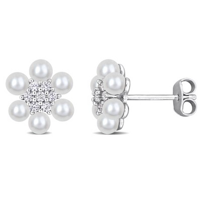 EVERLY JEWELRY | Sterling Silver 1/3 CT TGW Created White Sapphire & 3 - 3.5 MM Cultured Freshwater Pearl Fashion Post Earrings