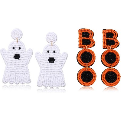 Artisan Beaded Halloween Earring Set - 2 Pairs of 'Boo' Ghost and Pumpkin Dangle Drops, A Festive Handmade Gift