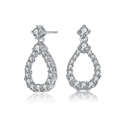 Guili Sterling Silver Rhodium Plated Clear Round Cubic Zirconia Open Pear Drop Earrings, a Graceful and Radiant Touch of Classic Elegance