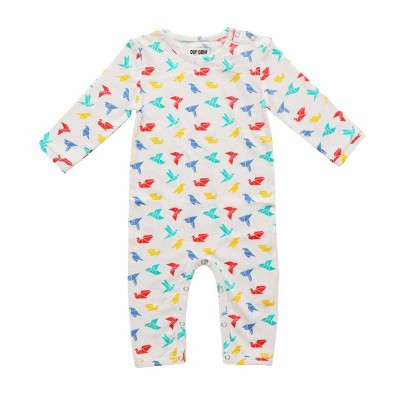 Ola! Otter Organic Cotton Infant Full Sleeve Romper – Gummy Birds White | Comfortable Toddler Daily Wear|
