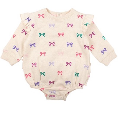 RuffleButts Baby Girls Sweatshirt Bubble Romper