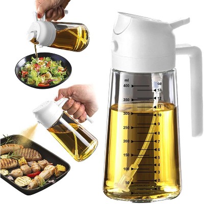 Garnen Oil and Vinegar Dispenser Set, 13.5oz & 22oz Oil Dispenser for Kitchen, Olive Oil Bottles + Wooden Rack, Cooking Oil Dispenser Glass Container