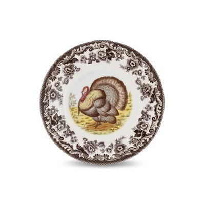 Spode Woodland Luncheon Plate - 9" Fine Earthenware with British Flowers Border, Rustic Duck Motif - Dishwasher, Microwave, Freezer & Oven Safe