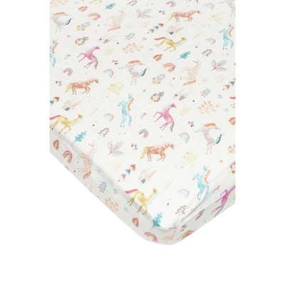 Loulou Lollipop Muslin Fitted Crib Sheet - Unicorn Dream