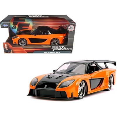 Han's Mazda RX-7 RHD (Right Hand Drive) Orange and Black "Fast & Furious" Movie 1/24 Diecast Model Car by Jada