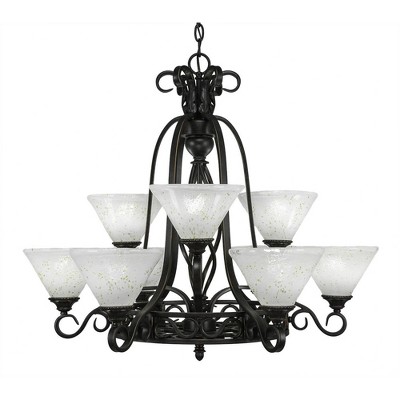 Toltec Lighting Elegante 9 - Light Chandelier in Dark Granite with 7" Gold Ice Shade
