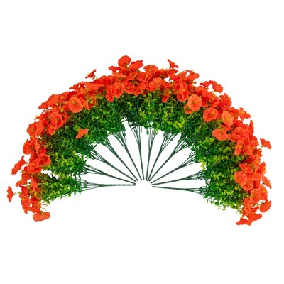 Nearly Natural 14-in UV Resistant Artificial Morning Glory Bush (Indoor/Outdoor) - Set of 12, Orange