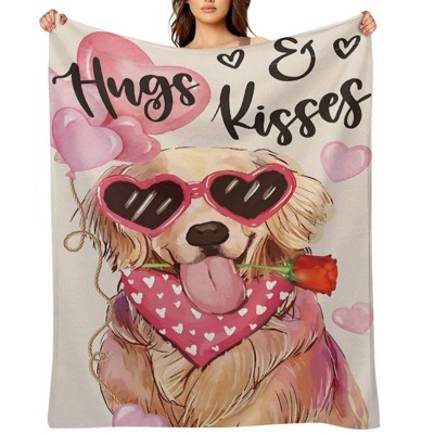 Valentine's Day Fleece Blanket Ultra Soft Anti-Pilling Golden Retriever Heart Sunglasses Print for Couch Bed 40x50 inches