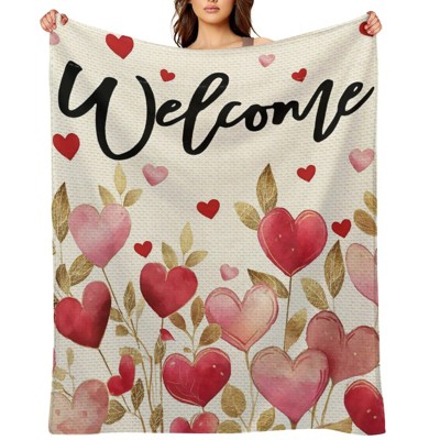Valentine's Day Fleece Blanket Ultra Soft Anti-Pilling Candy Heart XOXO Welcome Print for Couch Bed Camping 50x60 inches