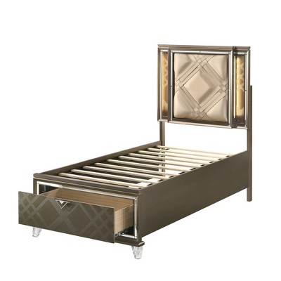 - leather headboard platform bed