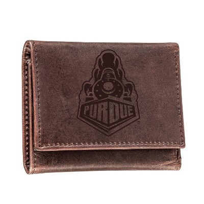 Evergreen NCAA Purdue Boilermakers Brown Leather Trifold Wallet Officially Licensed with Gift Box
