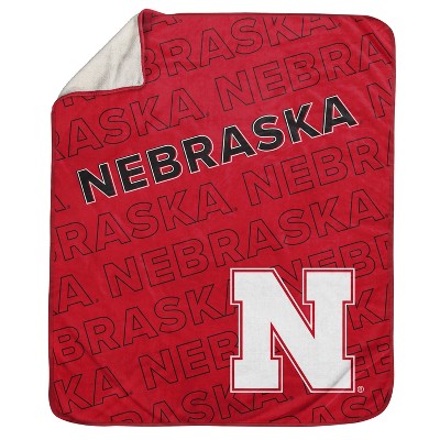 NCAA Nebraska Cornhuskers Wordmark 60 x 70 Faux Shearling Blanket: Plush Polyester Logo Throw