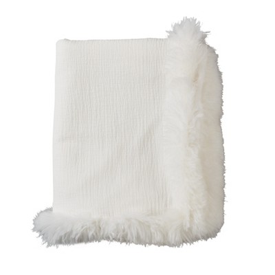 50"x60" Stitched Line Throw Blanket Ivory - Saro Lifestyle: Cozy Cotton, Fringed Edge, Modern Decor