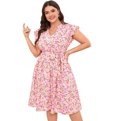 Coolmee Women's Summer MIdi Plus Size Dress Floral Boho Wrap Short Sleeve V Neck Ruffle A-Line Flowy Wedding Guest Long Sundress