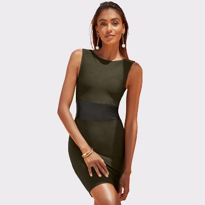 Women's Faux Leather Detail Bandage Dress - LASCANA