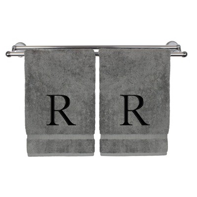BC BARE COTTON Monogrammed Hand Towel, 100% Turkish Cotton - Set of 2 - Gray - Black Block